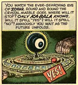 The name "Ka-Bala" and the reference to the Zohar indicate that the game was supposedly related to Kabbalah, an esoteric school of thought in Jewish mysticism. As they operated the game, the players were instructed to chant Pax, sax, sarax; hola, noa, nostra!
