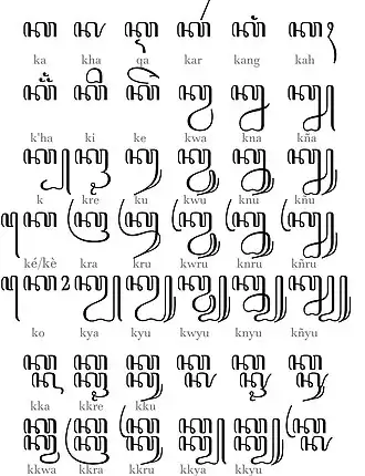 | ꦏ꦳ꦾ kʰya | ꦏ꦳ꦾꦃ kʰyah | ꦏ꦳ꦾꦁ kʰyang | ꦏ꦳ꦾꦂ kʰyar | ◌꧀ꦏ꦳ꦾ -kʰya | ◌꧀ꦏ꦳ꦾꦃ -kʰyah | ◌꧀ꦏ꦳ꦾꦁ -kʰyang | ◌꧀ꦏ꦳ꦾꦂ -kʰyar |