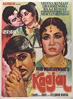 Kaajal (lit. Kohl) is a 1965 Bollywood romance drama film produced by Pannalal Maheshwari and directed by Ram Maheshwari. The film stars Meena Kumari, Raaj Kumar, Dharmendra, Padmini, Mumtaz, Mehmood, Durga Khote, and Helen. The soundtrack was composed by music director Ravi.