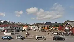 Kabelvåg (Norwegian), Gábelváhke (Lule Sami), or Gávvalváhki (Northern Sami)[3] is a village in Vågan Municipality in Nordland county, Norway. It is located on the southern shore of the island of Austvågøya in the Lofoten archipelago. Kabelvåg lies about 5 kilometres (3.1 mi) to the southwest of the town of Svolvær, the administrative centre of Vågan Municipality. The 1.37-square-kilometre (340-acre) village has a population (2023) of 2,291 and a population density of 1,672 inhabitants per square kilometre (4,330/sq mi).[1]