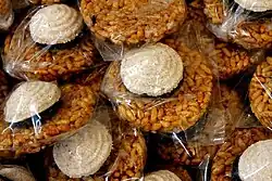 Kabok or Kapok is a Meitei Manipuri ethnic food item, generally made up of puffed rice, roasted rice and molasses. It is available in many flavours, including honey flavor, sugarcane flavor and many others. It is a very popular snack in the Indian state of Manipur, especially among the Manipuri ethnicity. Tronglaobi village is the largest Kabok producing village in Manipur[1][2][3][4][5]