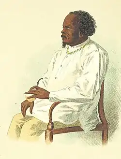 Kabua the Great, also Kabua Laplap, (c. 1820 – July 4, 1910) was a Marshallese iroij whom the German Empire recognized as the king of the Marshall Islands. From 1863 until his death in 1910, he claimed to be the paramount chief, or iroijlaplap, of the Ralik Chain, though his cousin Loiak also claimed the title. Kabua worked with western missionaries and copra traders to expand his wealth and political power. He was also one of the several Marshallese iroij to sign treaties with the German Empire, first granting Germans exclusive trading rights in the Marshalls in 1878 and then legitimizing German annexation of the islands as a protectorate in 1885. The German treaties recognized Kabua as King of the Marshall Islands, though the German anthropologist Augustin Krämer noted that "Kabua is king only by the grace of the Germans."[1]