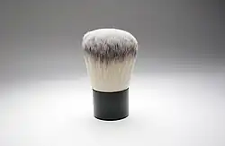 A kabuki brush, sometimes called mushroom brush, is a makeup brush with dense bristles and a short handle.[1] The brush head is usually rounded, though it can also be flat. Traditionally, the bristles are made of natural materials like animal hair, such as from horses or goats, but most modern brushes have synthetic bristles.