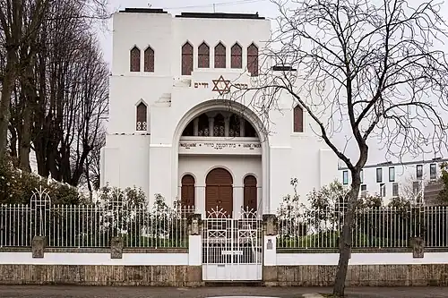 The synagogue was completed in 1938 in the Art Deco style,[1] and is the largest synagogue in the Iberian Peninsula.