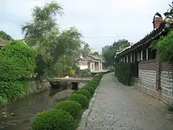 The Kaesong Folk Hotel is a tourist hotel located in Kaesong, North Korea, which opened in 1989. Housed in 19 traditional hanok-style courtyard houses, many of which date to the Joseon dynasty and retain their original furnishings.[1] The complex has 50 rooms, a traditional restaurant[2] and a souvenir shop. The houses themselves are located on both sides of the stream that runs through Kaesong,[3] with some located at the foot of Mountain Janam.