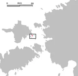 Kaevatsi is located in the Väinameri strait, Hiiumaa Parish, 0.4 km southeast of the Sarve peninsula, and is administratively, part of the village of Sarve. Prior to the 2017 administrative reform of Estonian municipalities, it was part of Pühalepa Parish.[1] Kaevatsi is 2.6 km long and 720 meters wide at the northernmost point. It has an total area of 1.4 square kilometers. The northern part of the island rises up to 7.7 meters above sea level.[2] Kaevatsi is part of the Väinameri Conservation Area.[2]