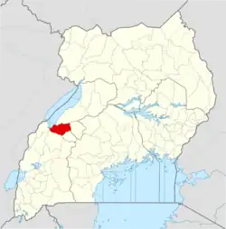 The district is bordered by Ntoroko District to the west, Hoima District to the north, Kibaale District to the east, and Kyenjojo District to the south.[3] The town of Kagadi, where the district headquarters are located, is approximately 250 kilometres (155 mi) north-west of Kampala, the capital city of Uganda.[4] This is about 92 kilometres (57 mi) south-west of Hoima, the nearest large city.[5]