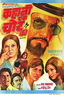 Kahani Ek Chor Ki (transl. Story of a Thief) is a 1981 Indian Hindi-language action drama film, produced by Balubhai Shah under the Deepak International banner, directed by S. Ramanathan. It stars Jeetendra, Moushumi Chatterjee, Vinod Mehra and music composed by Ravindra Jain. This was veteran actress, Lakshmi’s last Hindi film as a heroine, since she wanted to concentrate her acting career mostly down, towards the southern film industry. She would make her comeback to Bollywood industry after a gap of 25 years later with the film, Hulchul by playing Kareena Kapoor Khan’s grandmother and hasn’t acted in any Hindi films further, since then.[2][3][4][5][6][7][8][9]