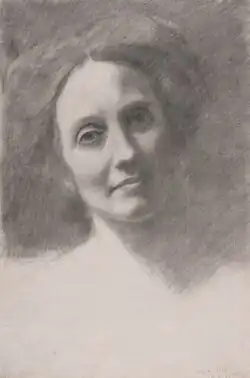 Gibran held the first art exhibition of his drawings in January 1904 in Boston at Day's studio.[6] During this exhibition, Gibran met Mary Haskell, the headmistress of a girls' school in the city, nine years his senior. The two formed a friendship that lasted the rest of Gibran's life. Haskell would spend large sums of money to support Gibran and would also edit all of his English writings. The nature of their romantic relationship remains obscure; while some biographers assert the two were lovers[43] but never married because Haskell's family objected,[15] other evidence suggests that their relationship was never physically consummated.[6] Gibran and Haskell were engaged briefly between 1910 and 1911.[44] According to Joseph P. Ghougassian, Gibran had proposed to her "not knowing how to repay back in gratitude to Miss Haskell," but Haskell called it off, making it "clear to him that she preferred his friendship to any burdensome tie of marriage."[45] Haskell would later marry Jacob Florance Minis in 1926, while remaining Gibran's close friend, patroness and benefactress, and using her influence to advance his career.[46]