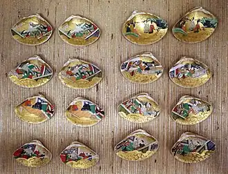The shells in the inside would have elaborate paintings, often depicting scenes from the Tale of Genji.[1] The aim of the game was to find the other half that would fit.