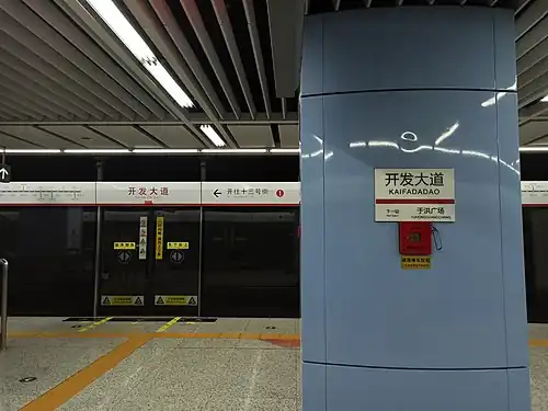Kaifadadao (Chinese: 开发大道站; pinyin: Kāifādàdào Zhàn) is a station on Line 1 of the Shenyang Metro.[1] The station opened on 27 September 2010.[2]