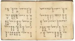 Several Kaifeng Torah scrolls survive, housed in collections in the British Library and elsewhere.[104] A number of surviving written works are housed at Hebrew Union College's Klau Library in Cincinnati, Ohio.[105] Among the works in that collection are a siddur (a Jewish prayer book) in Chinese characters and a Hebrew codex of the Haggadah. The codex is notable in that, while it ostensibly contains vowels, it was clearly copied by someone who did not understand them. While the symbols are accurate portrayals of Hebrew vowels, they appear to be placed randomly, thereby rendering the voweled text as gibberish. Since Modern Hebrew is generally written without vowels, a literate Hebrew speaker can disregard these markings, as the consonants are written correctly, with few scribal errors.[106]