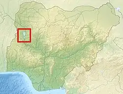 Kainji Lake, in North Central Nigeria, is a reservoir on the Niger River, formed by the Kainji Dam.[1] It was formed in 1968 and is a part of Niger State and Kebbi State.[2] Kainji Lake National Park (KNLP), situated around the lake, is Nigeria's oldest National Park, established in 1976.[3]