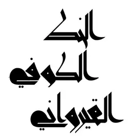 Kairouani style (Arabic: الخط القيرواني), or Kairouani Kufi style calligraphy (الخط الكوفي القيرواني), is one style of Islamic calligraphy. Kairouani calligraphy, originating from Kairouan, Tunisia in 10th/11th Century[1], is a distinctive early Islamic script known for its bold, angular form. Emerging during the 11th century, it played a key role in transcribing the Qur’an and religious texts. Unlike the more cursive Kufic style, Kairouani script emphasizes geometric precision and upright, monumental strokes. It reflects the austere beauty and spiritual solemnity of North African Islamic art. The script’s thick lines and minimal ornamentation convey both clarity and gravitas. Today, it represents a vital link in the evolution of Arabic calligraphy, showcasing regional identity, cultural heritage, and the sacred traditions of Islamic manuscript art.[2][3][4]