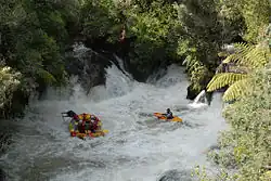 The upper section of the Kaituna, also referred to as Okere River, offers some of the best whitewater kayaking and rafting in the world, with the Okere Falls area containing the highest commercially rafted waterfall, 7 metres (23 ft), in the world.[3] It is also famous for its trout fishing.