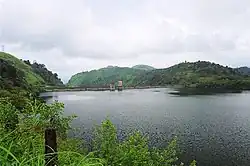 Kakki Dam is a concrete gravity dam built on the Kakki river, a tributary of the Pampa river in the Ranni forest in the Seethathodu panchayat of Pathanamthitta district in Kerala, India. The dam is located in a forested area adjacent to the Periyar National Park. It was built in 1966[1] as part of the Sabarigiri Hydro Electric Project. The water sources of the dam are from the Pampa dam and the Kakki river. The Sabarigiri project envisaged creation of two reservoirs which are Pamba and Kakki reservoirs and connecting these together to form a single source of water. The water from Pamba reservoir is connected to the Kakki reservoir through an underground tunnel of length 3.21 km. The intake of the Sabarigiri Powerhouse is from Kakki reservoir.[2] The dam is 336 metres (1,102 ft) long and 116 metres (381 ft) high and is located at an elevation of 981.45 metres (3,220.0 ft) above sea level. The release flows through Ranni, Konni, Kozhencherry, Thiruvalla, Chengannur, Kuttanadu, Mavelikara and Karthikappally taluks [3] before emptying into the Vembanad lake.