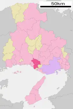 Kakogawa (加古川市, Kakogawa-shi) is a city located in Hyōgo Prefecture, Japan. As of 1 June 2024, the city had an estimated population of 255,523 in 110,380 households and a population density of 1,800 persons per km2.[1] The total area of the city is 138.48 square kilometres (53.47 sq mi).