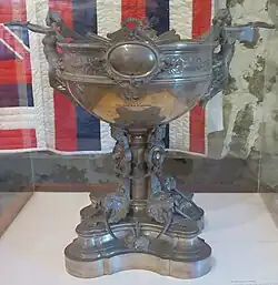 Kalākaua accepted an invitation to appear on December 29 at P. T. Barnum's Great Traveling World's Fair, Museum, Menagerie and Hippodrome. Barnum was the founder of Barnum & Bailey Circus, and had promoted the 1850–52 Jenny Lind tour of America.[63] An advertisement for Kalākaua's appearance ran in the New-York Tribune,[64] and Barnum would later remember the event's attendance record as 20,000. Barnum provided the royal party with bannered box seats to view the performances. For the finale, Barnum and Kalākaua rode the perimeter of the arena in an open carriage, as Kalākaua waved and tipped his hat to the cheering crowd.[65]