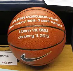 Mosqueda-Lewis is known for her three-point shooting accuracy[10]—she hit a school record nine three-point shots in a game between Mater Dei and Fairfax on March 8, 2011.[11][12][13] She made 337 three-pointers at Mater Dei, more than anyone else in her high school's history. In 2015, she broke the NCAA Division I record for career 3-pointers, during UConn's 91–70 regional final win against Dayton.[14] As of that game and including what she achieved in that game, she now has 395 for her career.[14]