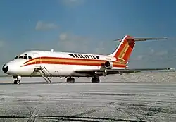 The American International Airways brand name was also used by a charter and scheduled passenger airline which in 1981 was operating a hub located at the Philadelphia International Airport with nonstop service to Atlantic City, Boston, Chicago Midway, Cleveland, Detroit, Fort Lauderdale, Miami, Norfolk, Orlando, Pittsburgh, Tampa, and West Palm Beach flown with McDonnell Douglas DC-9-30 and MD-80 jets. The airline declared bankruptcy on July 19, 1984, and ceased operations in September.[6][7] Kalitta, however, continued using the AIA name, as "Kalitta|American International Airways" for cargo-only flights until 1997.