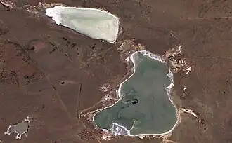 Kalkaman is a system of two endorheic lakes in the Irtysh Basin. The lakes lie at an elevation of 108.6 meters (356 ft). The area around the lakeshores is used as pasture for local cattle.
