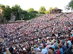 Immediately after the war, the arena was used amongst other things for boxing[3] and for circus performances, before becoming the site of the Karl May Festival in 1952. Concerts also take place there, including Norddeutscher Rundfunk's annual Kult am Kalkberg.[6][7] With the Berlin Waldbühne and the Freilichtbühne Loreley, it is one of the best known of the former Thing sites.[4]