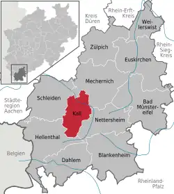 Kall (German pronunciation: [kal]) is a municipality in the district of Euskirchen in the state of North Rhine-Westphalia, Germany. It is located in the Eifel hills, approximatively 20 km south-west of Euskirchen.