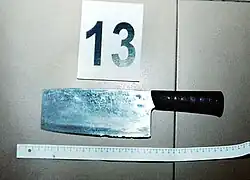 Among the items collected were a partially damaged meat cleaver, a rubber mallet, some Chinese language newspapers with their pages missing, plastic bags, some of Leong's clothes previously worn before his arrest, and a towel he allegedly used to strangle Liu to death. Forensic pathologist Dr Teo Eng Swee, who conducted an autopsy on the victim, found tiny shards of metal fragments stuck to the muscles of Liu's severed left leg (later recovered after Leong was arrested). These metal fragments were later matched to the meat cleaver, which Leong claimed to have used to dismember Liu.[3]