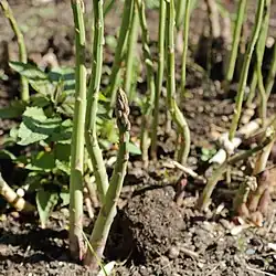 In 1905, Hotta planted asparagus for the first time on his newly acquired land. Due to the three-year time commitment that it takes to grow asparagus up to harvesting height, he was without financial returns from this new investment during this time period.[2] As a result, he was forced to plant several acres of quicker growing crops like beans and onions to supplement his income and have enough money to pay his bills. Despite the minimal financial returns that Hotta received from his beans and onions during the years 1905, 1906, and 1907, he was very optimistic about the future because of the 1908 season in which he would be able to harvest and sell asparagus for the first time.[3]