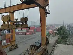 Kamalapur railway station has a yard of Dhaka Inland Container Depot owned by the authority of the Port of Chittagong. Saif Power Tech Limited was appointed as its operator in 2015.[61] It was built on 32 acres of land near the terminal.[62] It can hold 10 percent of Chittagong Port's 70 percent containers, i.e. 90,000 TEUS.[63]
