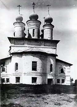 The Soviet government closed down the Kamenny Monastery in 1925 and had its brethren evacuated from the island. The buildings were adapted to house a penal colony for minor delinquents. This establishment proved a failure and by 1937 the island had been deserted. The regional administration profited from the situation to blow up the oldest building of the Russian North in order to obtain brick required for construction of the local "palace of culture", which eventually failed to materialise. The ruins of the cathedral are still in situ.[1]