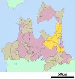In terms of national politics, the district is represented in the Diet of Japan's House of Representatives as a part of the Aomori 1st district and the Aomori 2nd district.[1]