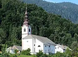 The local church, dedicated to the Holy Trinity, was built in 1652 and enlarged in 1754. It has two altar paintings by Matevž Langus.[2]