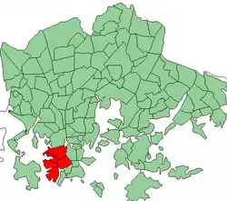 Kampinmalmi (Swedish: Kampmalmen) is a district in southern Helsinki, Finland. It consists of five neighbourhoods: Etu-Töölö, Lapinlahti, Kamppi, Ruoholahti and Jätkäsaari.