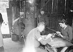 At the end of August 1944, the Kampinos Group already had undisputed control over the eastern and central areas of the Kampinos Forest, inhabited by several thousand people.[184] Villages such as Ławy, Łubiec, Roztoka, Kiścinne, Krogulec, Wędziszew, Brzozówka, Truskawka, Janówek, Pociecha, Zaborów Leśny, and Wiersze were liberated from German occupation. Polish patrols were also able to penetrate numerous neighboring villages previously unoccupied by enemy forces. The area liberated by the Home Army soldiers was called the "Independent Republic of Kampinos".[185][186] Its unofficial capital was Wiersze, where the headquarters of the Kampinos Group were located.[184]
