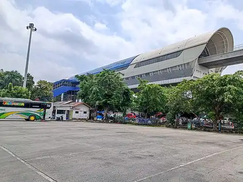 Kampung Rambutan LRT Station is a light rail station located in Jalan Bungur, Rambutan, Ciracas , East Jakarta . The station serves the Cibubur line of the Jabodebek LRT system.[ 1] The station is located inside the Kampung Rambutan Bus Terminal itself, hence the station name.