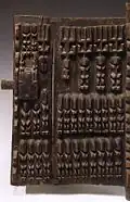 The Kanaga mask is a mask of the Dogon of Mali traditionally worn by members of the male Awa Society during a ceremony called the dama.[1] The dama is performed, months or even years after a person has died, in order to send their soul to the world of the dead.[2] The Kanaga mask is one of the most popular of the many types of masks used during a dama; in 1935, French anthropologist Marcel Griaule, counted 29 out of 74 masks at one such ceremony as being of the Kanaga type.[2]