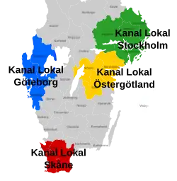 - Kanal Lokal Östergötland, broadcasting to Östergötland via the Motala, Linköping and Norrköping transmitters.
