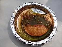 Kanda Kachori or Pyaaz Kachori (transl. Onion Kachori) is an Indian crispy, flaky, deep-fried pastry filled with spiced onion stuffing.[1][2] It is typically served hot with a sweet and spicy tamarind chutney.[3] Originating in the city of Jodhpur, it is now served throughout Rajasthan and rest of India.[4]
