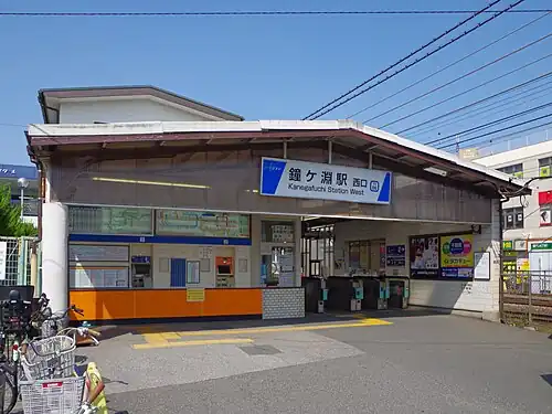 ![]() Kanegafuchi Station and west entrance in May 2013 | |||||||||||