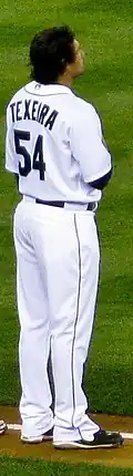On December 10, 2009, Texeira was selected by the Seattle Mariners in the Rule 5 draft.[2] Mariners General Manager Jack Zduriencik had been familiar with Texeira from his days with the Brewers, where he was scouting director when Texeira was drafted by the Brewers in 2004.[3] Texeira made the Mariners' Opening Day roster following a strong performance in spring training.[4] With the Mariners, he recorded a 5.30 ERA, 6.8 strikeouts per nine innings, and 4.8 walks per nine innings in 18+2⁄3 innings pitched. However, Texeira and Jesús Colomé were designated for assignment on May 31, as the Mariners promoted pitchers Sean White and Garrett Olson.[5]
