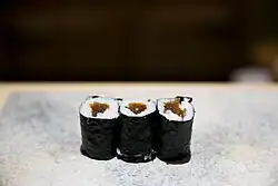 - ^ a b Kawasumi, Ken (2001). The Encyclopedia of Sushi Rolls. Translated by Driussi, Laura. Japan Publications Trading. ISBN 9784889960761. OCLC 921930235. Retrieved 3 July 2019.