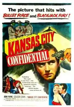 Kansas City Confidential is a 1952 American independently-made[1] film noir and crime film directed by Phil Karlson starring John Payne and Coleen Gray. The film was released in the United Kingdom as The Secret Four. Karlson and Payne teamed a year later for 99 River Street, another film noir, followed by Hell's Island, a film noir in color.[2]