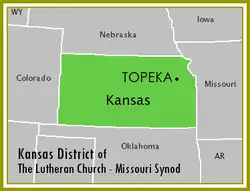 The Kansas District is one of the 35 districts of the Lutheran Church – Missouri Synod (LCMS). The district includes approximately 160 Kansas congregations and missions, subdivided into 16 circuits, as well as 44 preschools and 14 elementary schools. Baptized membership in district congregations is approximately 55,800.[1]