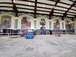 Hale Library suffered smoke and water damage stemming from a fire which unintentionally broke out on the rooftop during May 2018.[2][11][10] The library was closed into the 2020–2021 academic year. Special Collections and University Archives did not have any ensuing water damage but did have some damage from smoke.[12] The Library was renovated with student's needs in mind, adding outlets and study spaces. The Great Room and the David Overmyer murals, which suffered water and smoke damage in the fire, were restored in this renovation. While 85% of the building was damaged in some way during the fire, less than 1% of Hale's original collection was lost.[11] Restoration and renovation efforts after the fire totalled upwards of $90 million as of October 2019.[13]