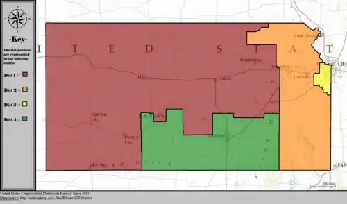 Table of United States congressional district boundary maps in the State of Kansas, presented chronologically.[3] All redistricting events in Kansas between 1973 and 2013 are shown.