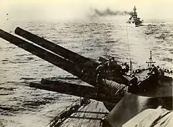 From the turn of the century up through the start of the Second World War Japanese planners believed achieving victory in such a battle would be dependent upon the effective use of a strong battleship force.[2] The Japanese triumph at Tsushima led to the naval doctrine of Taikan Kyohō Shugi (大艦巨砲主義), the principle of big ships and gigantic guns.[3] Imperial Japanese Navy planning envisioned assuming a defensive posture and waiting upon the enemy fleet to approach, then destroying it in a sharp battle off the Japanese mainland.[3] Japan's victory over the Imperial Russian Navy validated this doctrine in the eyes of the Imperial Japanese Navy General Staff. Thereafter naval procurement and subsequent deployment of naval assets was based upon the Kantai Kessen doctrine.