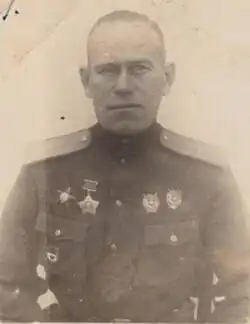 After Operation Barbarossa began, Tsalikov and his unit fought in Bessarabia with the 9th Army of the Southern Front. Defending positions on the east bank of the Prut, the division faced the German and Romanian advance southwest of Kishinev. During the fighting, Tsalikov, by now a major, assumed command of the 591st Rifle Regiment of the 176th after its commander was wounded. He was awarded the Order of the Red Banner for his "bravery and courage" in the fighting near Skulyany and "skillful organization" of the crossing of the Dniester by the 591st and 300th Artillery Regiments of the division.[1][2]