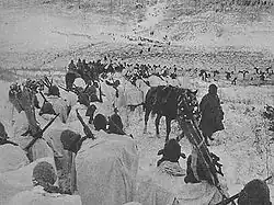 To ensure the success of the first phase of the invasion, enormous forces would be gathered. By 16 September, it was decided that "for operational preparations lasting three months and involving 23 or 24 divisions on the offensive (including the Korea Army)," the logistical basis would be 1,200,000 men, 35,000 motor vehicles, 500 tanks,[d] 400,000 horses, and 300,000 laborers.[53] That would have meant, however, that the Western Front facing the Mongolian People's Republic and the Trans-Baikal region could be defended by only one division, the 23rd, as well as the equivalent in miscellaneous forces of a few more.[e] Indeed, during the initial phase of operations, the Japanese Sixth Army was allocated only the 23rd Division and the 8th Border Guards Unit, veterans of the fighting at Khalkhin Gol two years earlier.[55] To minimize the danger from a Soviet counteroffensive in the west while the bulk of the Japanese Army was engaged in the east, the IJA hoped that delaying actions and the vast expanses of the Gobi Desert[56] and Hailar Plain[57] would serve as "strategic buffers" to prevent the Red Army from mounting a serious challenge to the heart of Manchuria before the main body had regrouped for a pivot westward. The final objective of the Japanese troops was a line running through Skovorodino and the western slopes of the Great Khingan Mountains, along which they would defeat the remaining Soviet forces and transition to a defensive stance.[58]