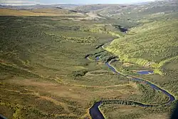 The Kanuti (Kkʼoonootnoʼ in Koyukon[4]) is a 175-mile (282 km) tributary of the Koyukuk River in the U.S. state of Alaska.[3] The river begins near the Arctic Circle and flows generally west, passing under the Dalton Highway near Caribou Mountain.[5] After continuing through a relatively flat basin, it enters a 1,200-foot (370 m) deep canyon before meeting the larger river near Allakaket.[6] The Kanuti National Wildlife Refuge covers a large part of the river basin.[5]